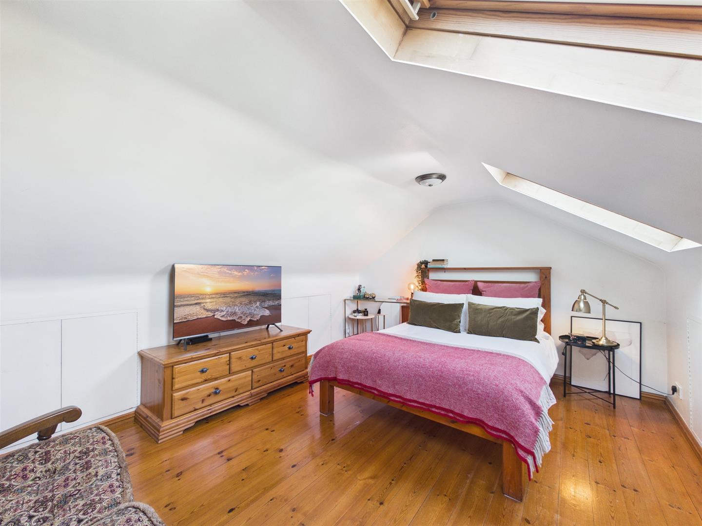 Upstairs, there are two comfortable double bedrooms, a single bedroom, and a modern family bathroom. The loft room is beautifully presented, generously sized, and offers excellent natural light with eaves storage, making it ideal as a guest room, home office, studio, or games room.